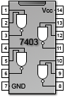 7403   vier NAND mit je zwei Eingänge, Open Collector