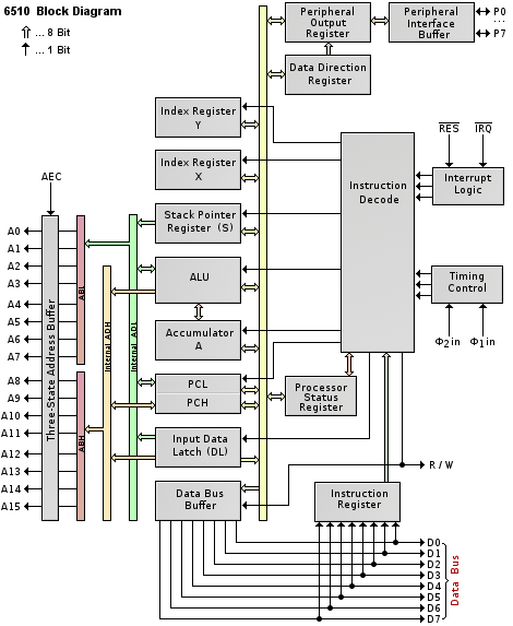 | Pin 3 | !IRQ | I | Interrupt ReQuest: Bei LOW führt die CPU nach dem aktuellen Commando einen Sprung aus (Pointer $fffe) sofern der Interrupt nicht maskiert ist. |