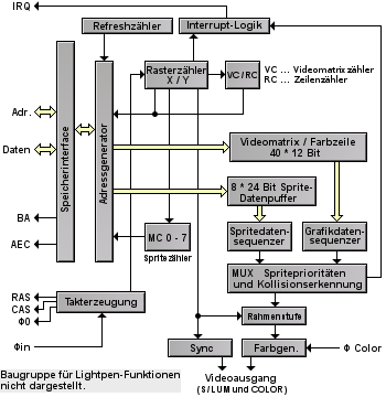 Das folgende Blockschaltbild gibt eine Übersicht über den inneren Aufbau des VIC und die unabhängig voneinander arbeitenden Funktionsgruppen: