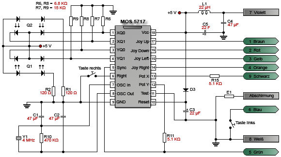 Um eine echte Maus zu haben, muss diese im Proportionalmodus betrieben werden. Dafür ist ein eigenes Treiberprogramm notwendig. Die Informationen liegen als Widerstandswerte an PotX/PotY an. Dabei können 64 verschiedene Positionswerte unterschieden werden. Dadurch ist es möglich, die Mausabfrage im Hintergrund über den Serviceinterrupt zu bewerkstelligen. Die linke Maustaste liegt am Feuerknopf, die rechte an Joy-Up.